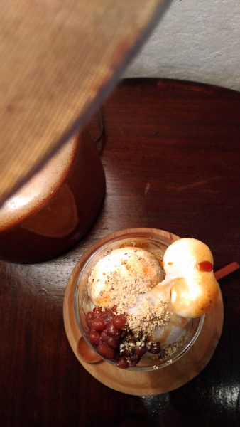 自家製の煮小豆と焼き餅、そして黒ごまきなこ…。
